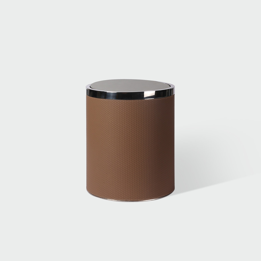 Metal lid trash canMaterial: Leather+MetalColor: White, Black, Light Coffee, Grey, Orange, Dark CoffeeSize:D:225mm H:295mmApplicable scenarios: bedroom, model room, hotel, living room, office, coffee shop, restaurant
